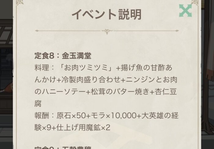 - Webイベの定食の名前草