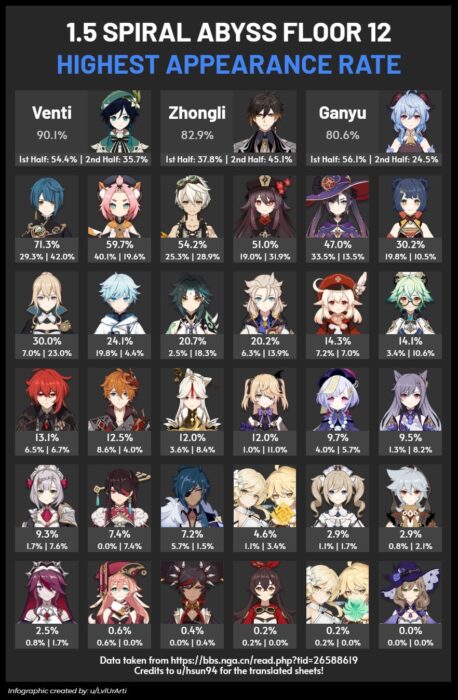 胡桃、甘雨、ショウ、ウェンティ、今ならエウルア