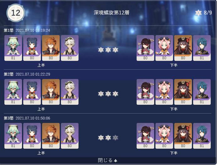 自分も無凸胡桃に白槍装備で行秋と組ませて12-3☆9行けたよ>>104
