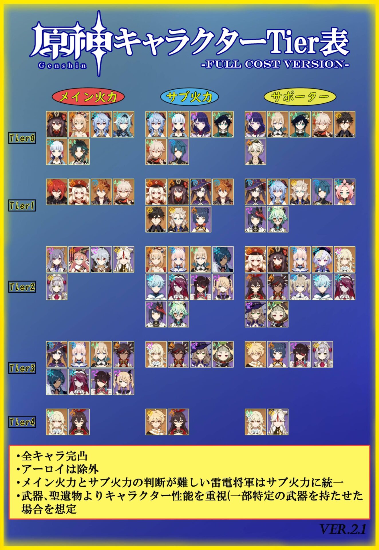 全キャラどこかしらでTier2以上に置きたいという主観も含めて作ったからエンターテインメントの一環として見て下さい
