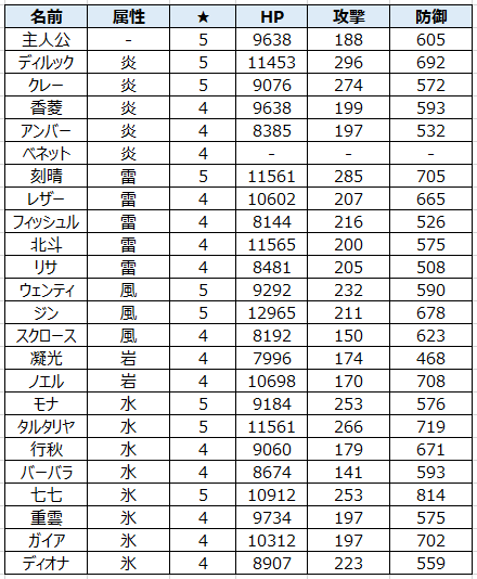 このレスで貼られてた各キャラLv80のステータスを表にしてみた