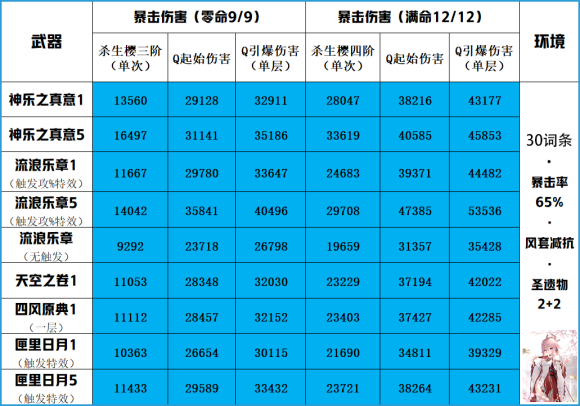 左からスキル1発のダメージ、元素爆発の最初の、元素爆発のキツネトーテムを破壊し与えるキツネトーテム1体あたりの追撃ダメージ![]()
