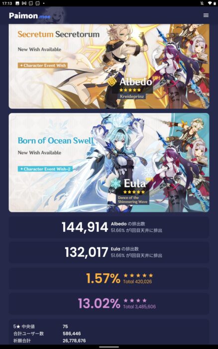 アルベドは人気キャラだからエウルアより回るのは当然として新キャラなのに復刻に負けたシンカクと復刻2回目に負けた甘雨は存在価値あるか?![]()