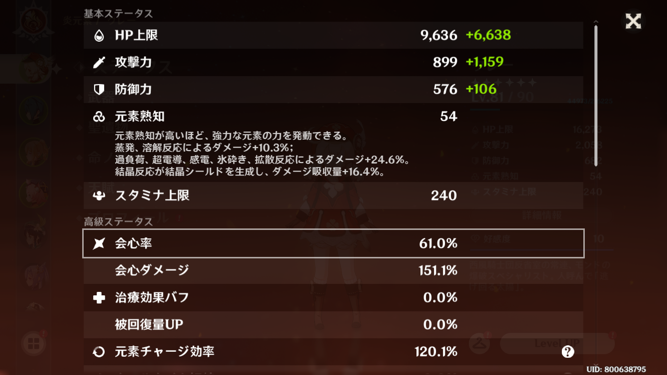 聖遺物が旧貴族3とチグハグな会心遺物&属性バフ遺物だから伸びる余地はある![]()