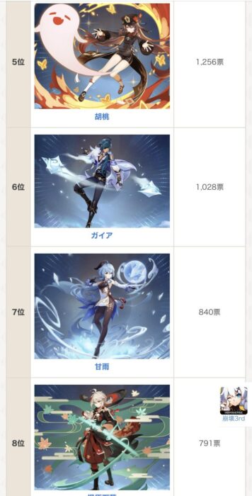 この並びに食い込んでくる雷電胡桃甘雨が真の人気キャラだろうな - 173: 名無しさん 2022/10/10(月) 22:08:00.91