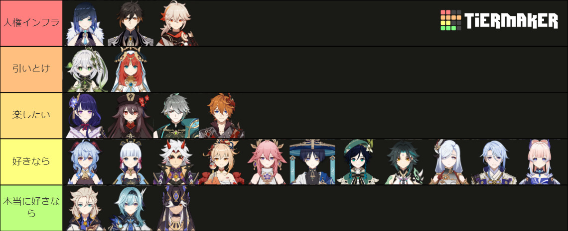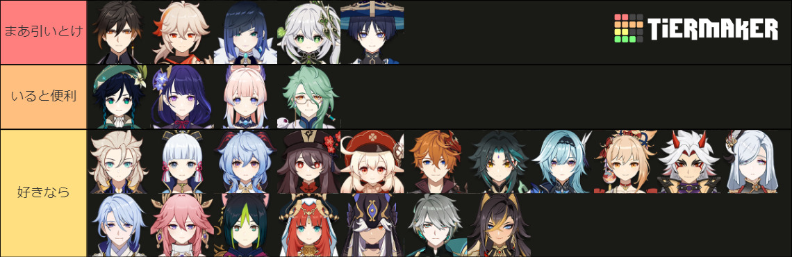 - ほぼ全キャラ持ってる俺からするとTier表はこんなもんになったわ