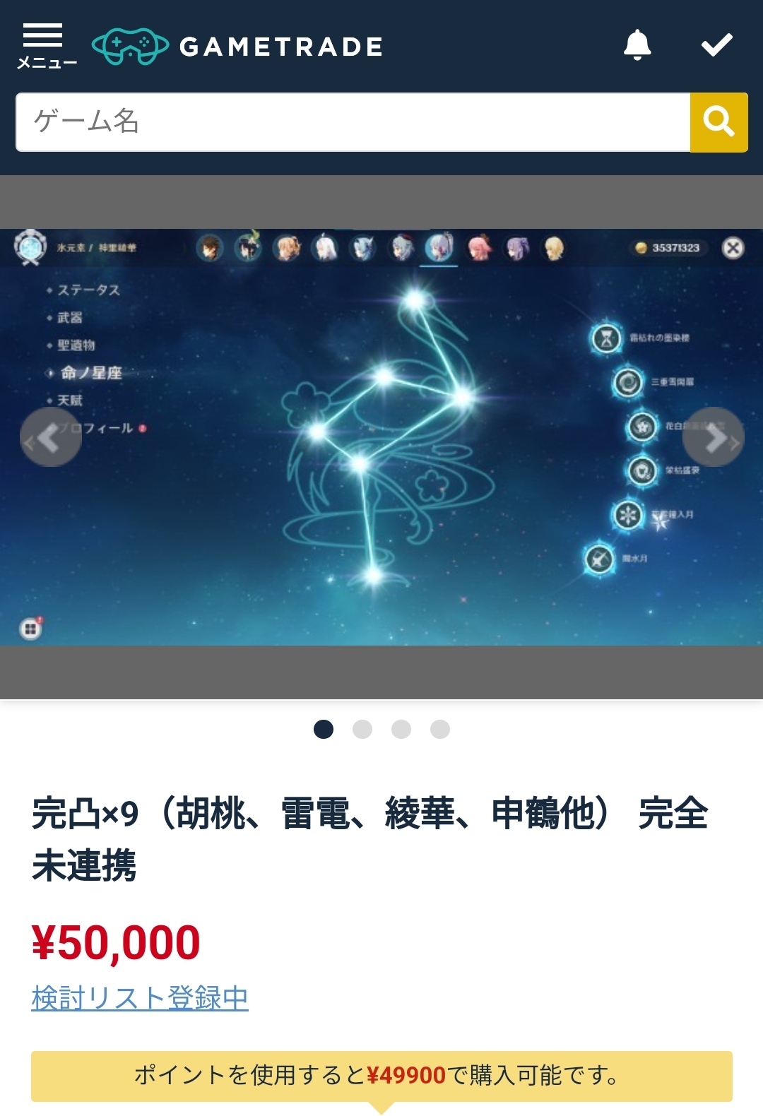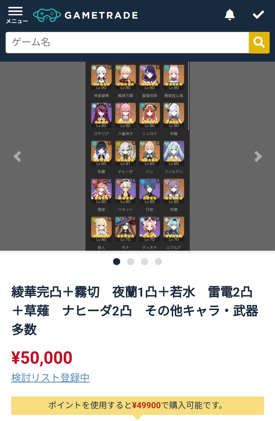 - ゲームトレード見てるとそこそこの完凸キャラや餅武器あって大体の相場が5万~で買えちゃうんだな