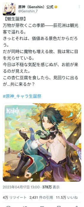 - ぶっちゃけ原神の規模でTwitterでも11万人もいいねする人がいるくらいなら