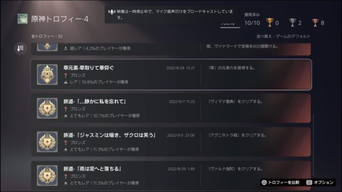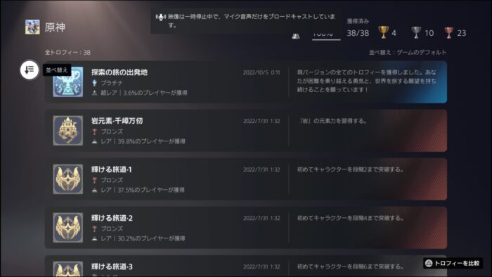 - PS5版のトロフィーだとサービス開始時のユーザーが良くも悪くも統計に入ってないんだよな