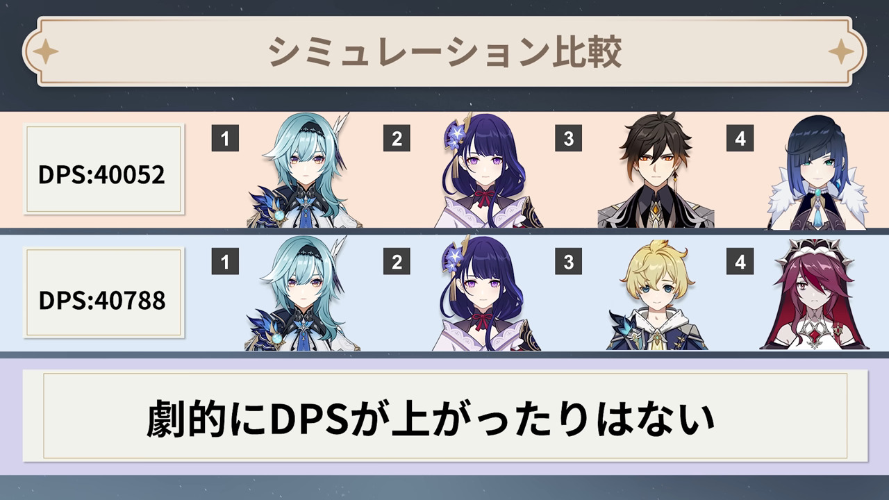 - 流石にエウルア入れるパーティなら完凸前提で鐘離夜蘭雷電エウルアのが強いんじゃねーか