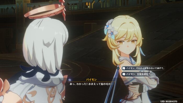 - パイモンの頭頂部にある髪の毛毎晩少しずつ毟って数ヶ月後に俺と同じ気持ち味わってもらおw