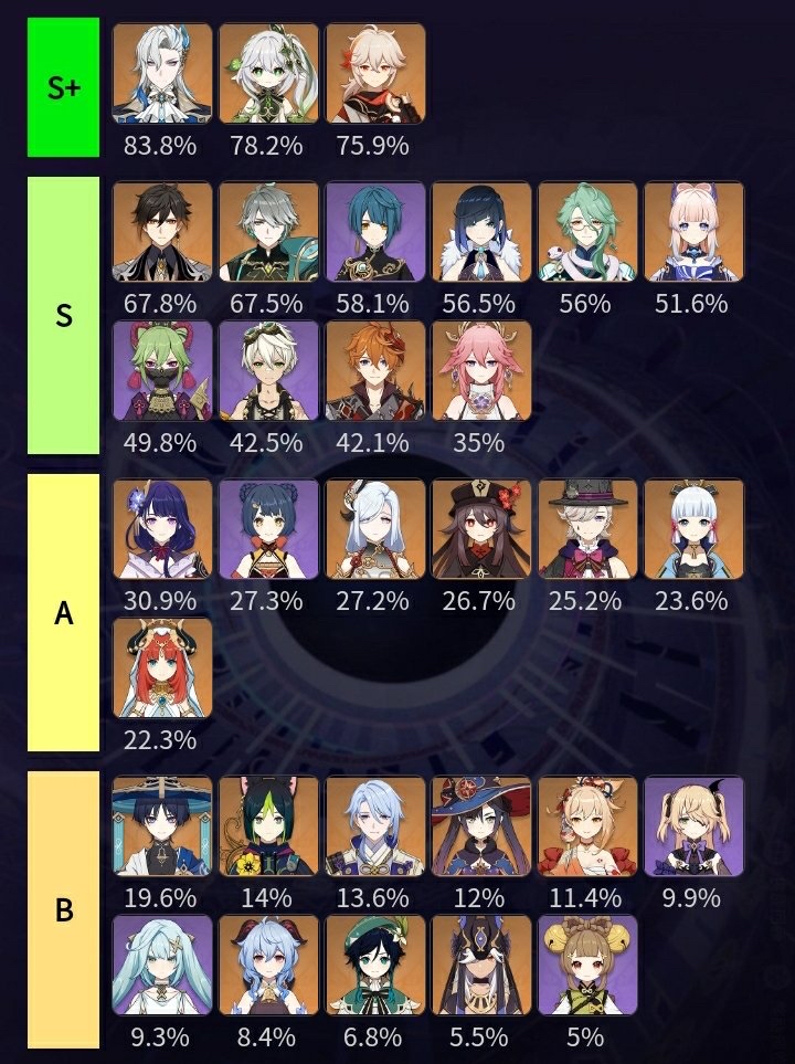 - アルハイゼン 胡桃 綾華が3強とか言われてたけど配膳とあと2人じゃ格が違うわな