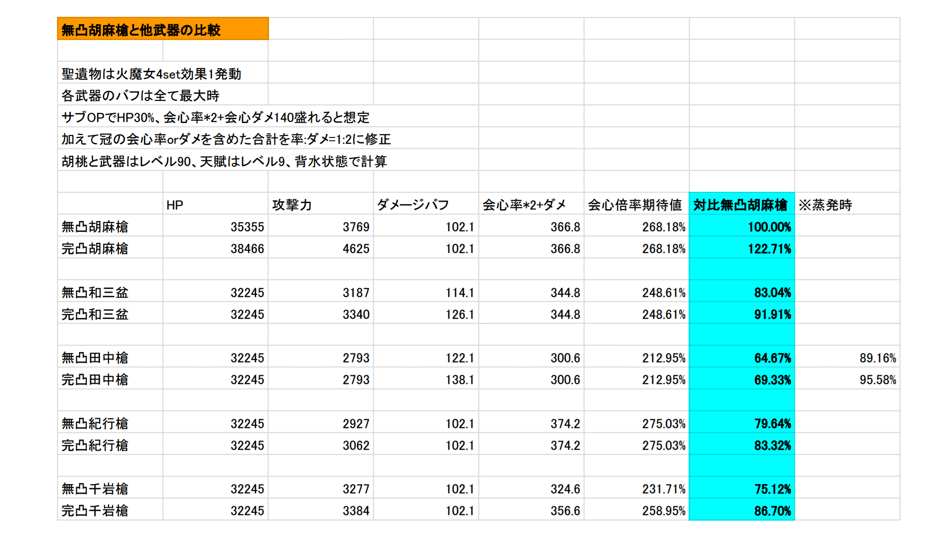 >>295のやつ自分で計算してみたら完凸胡麻のHP参照が無凸時だったり、田中の攻撃が高かったり色々ミスあったよ