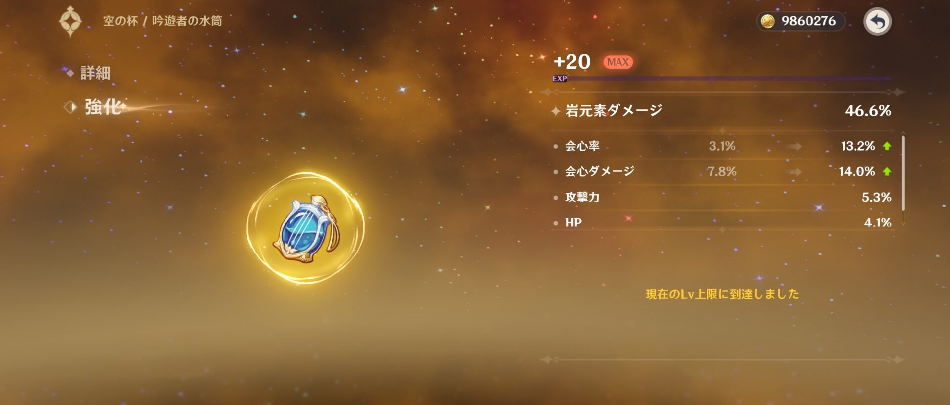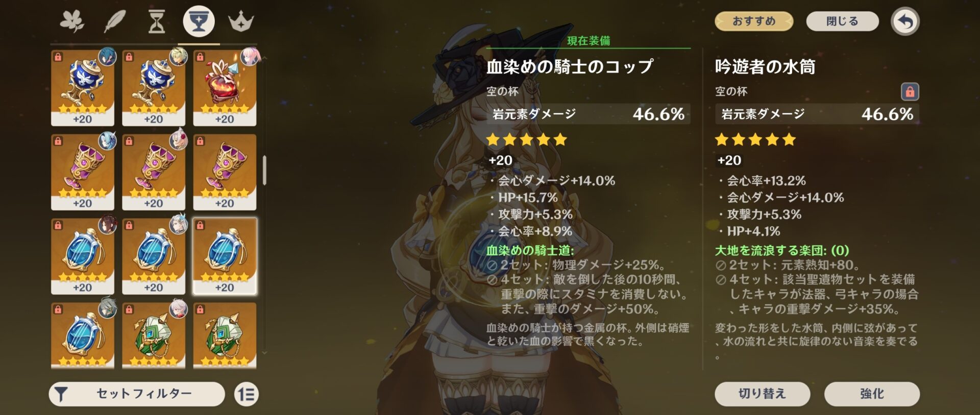 - 聖遺物スコア気にしだすと率5%伸びとかそれだけでスコア10更新だから神成長に見える