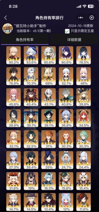 たしかに上位15キャラは見かける - 787: 名無しさん 2024/10/18(金) 12:47:45.24