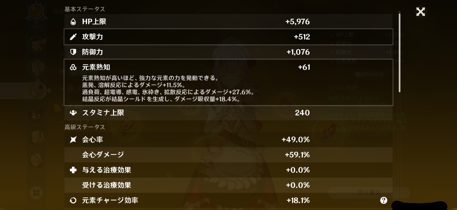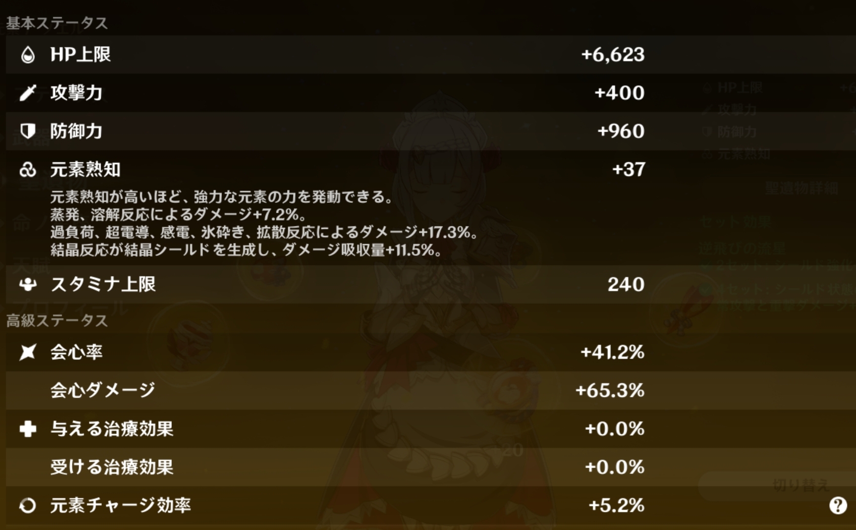 聖遺物のみの防御力・会心率・会心ダメ見せてくれませんか…